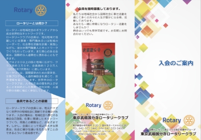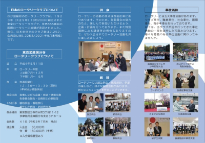 ロータリーとは何か、当クラブの概要や、どのような活動を行っているかを記載しているパンフレットです。 クリックするとダウンロードいただけます。